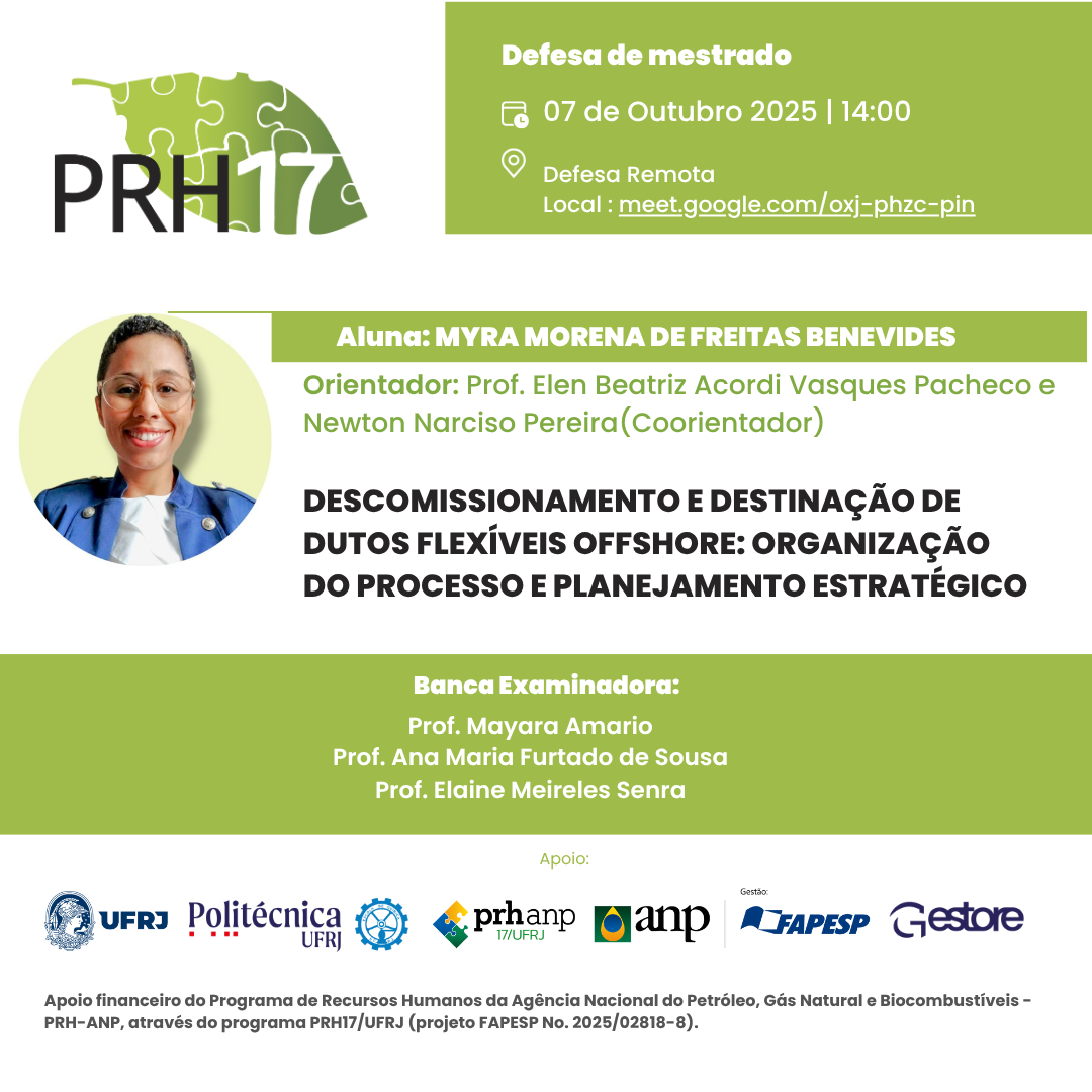 Defesa da aluna de mestrado Myra Morena de Freitas Benevides